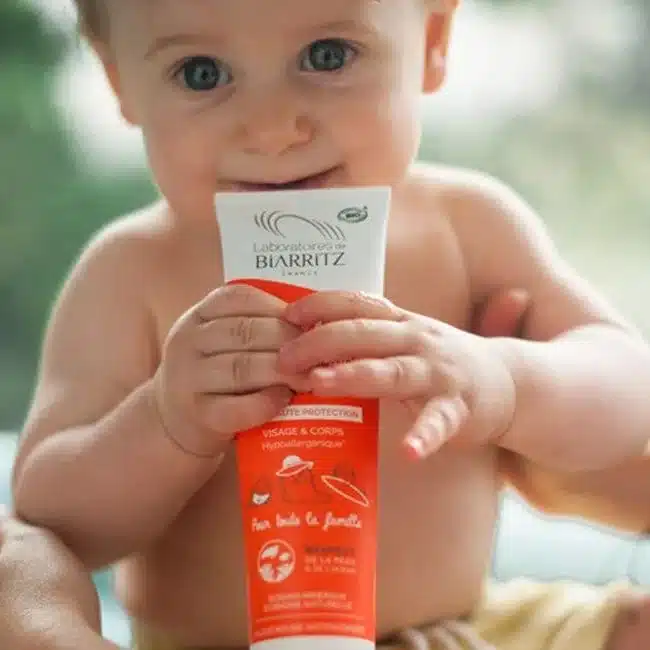 La formule est non parfumée et hypoallergénique. Ainsi, elle convient parfaitement aux peaux sensibles des bébés. Les Laboratoires de Biarritz la recommandent spécifiquement dès l’âge de 6 mois. Pour les nouveau-nés de moins de 6 mois, l’avis d’un pédiatre est indispensable. Par ailleurs, sa composition douce en fait aussi un bon choix comme écran solaire pour femme enceinte soucieuse des produits naturels.