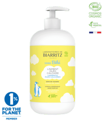 Laboratoires de Biarritz Alga Natis Liniment Oléo-Calcaire Bio 500 ml est un soin à base d’Alga-Paisium, un actif exclusif qui apaise la peau fragile du nourrisson et la protège des irritations dès la naissance. Il nettoie en douceur l’épiderme fessier, le nourrit et crée un film protecteur qui l’isole des agressions extérieures pour prévenir l’apparition de rougeurs.