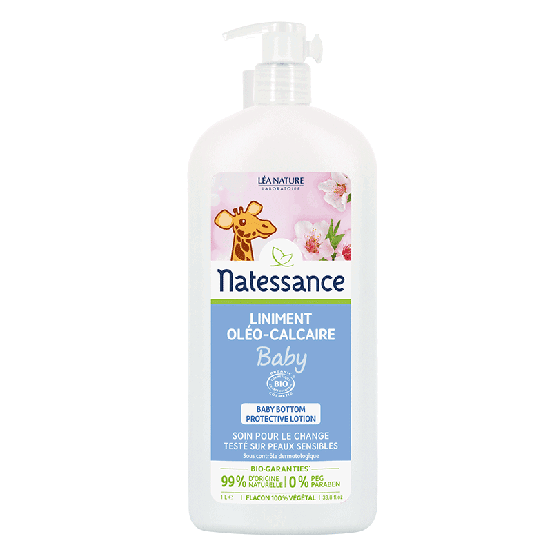 Composé d’huile d’olive extra-vierge associée à une solution de calcium, le liniment oléo-calcaire surgraisse, protège l’épiderme délicat des bébés et prévient des rougeurs passagères. Ce nettoyant doux relipidant 500ml Natessance® est idéal sur les zones sensibles comme les fesses de bébé.
