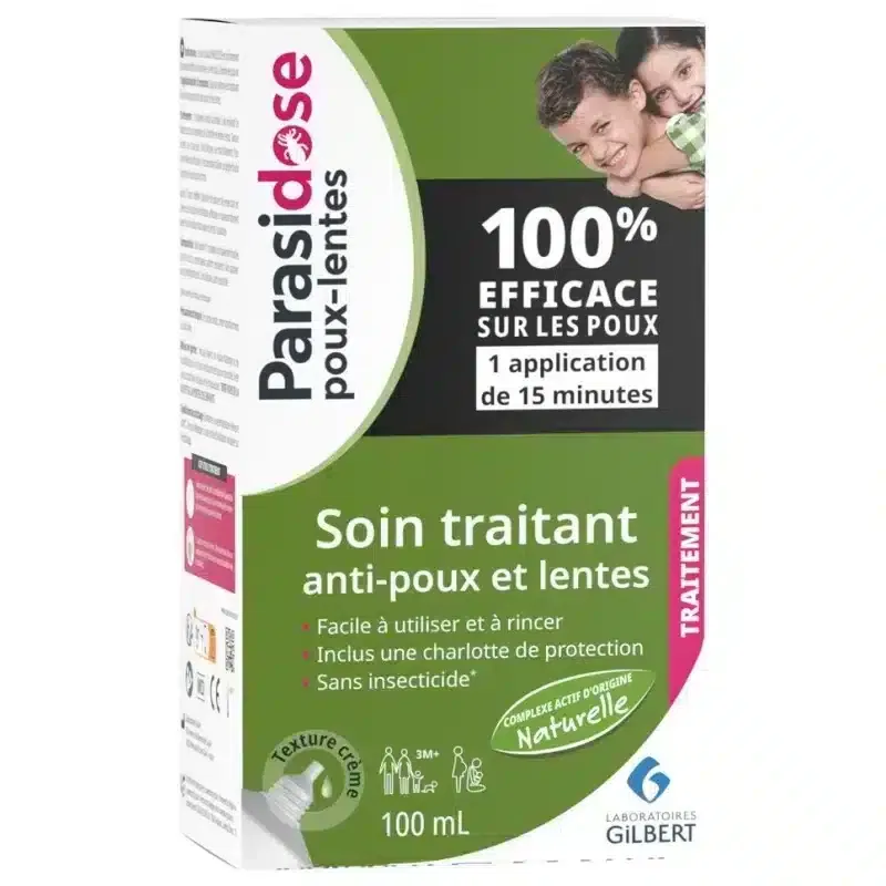 Le Parasidose Soin Traitant Anti-Poux 100ml est une solution douce et efficace pour éliminer les poux et les lentes dès la première utilisation. Conçu pour toute la famille, il est adapté aux bébés dès 3 mois, aux enfants et aux adultes. Sa formule sans insecticide neurotoxique agit mécaniquement pour asphyxier et déshydrater les parasites, offrant ainsi un traitement sûr et respectueux du cuir chevelu.