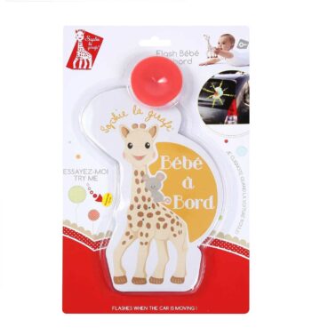 Le flash Sophie La Girafe bébé à bord sécurise vos trajets avec un signal lumineux doux. Ce jouet d’éveil facile à installer sur la vitre arrière divertit bébé et rassure les parents. Accessoire de promenade indispensable.