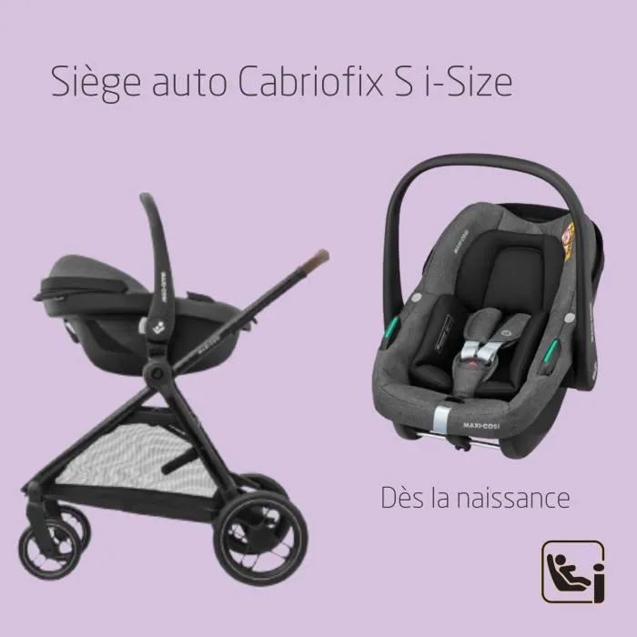 Oui, le siège auto CabrioFix S i-Size est inclus. Il se fixe à la ceinture ou sur les bases FamilyFix 3 & FamilyFix 360. 🔒