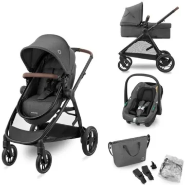 Maxi-Cosi Zelia S Trio Dark Grey est un travel system 3-en-1 pensé pour simplifier vos sorties dès la naissance : une poussette 2-en-1 dont l’assise se transforme en nacelle, un siège auto CabrioFix S i-Size pour les trajets sûrs, et des accessoires utiles au quotidien. Confortable, maniable et durable jusqu’à ~4 ans (0–22 kg), c’est le choix idéal des parents au Maroc en quête de sécurité i-Size et de praticité au quotidien.