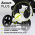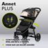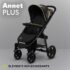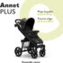 Le grand panier contiendra tous les accessoires nécessaires ou les courses. La poussette Annet a été munie d’un système de pliage simple jusqu’à la taille compacte. L’installation des roues « avec un clic » permet de les détacher facilement du châssis