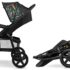 Le dossier de la poussette est réglable à partir de la position assise jusqu’à la position couchée, il est possible aussi de régler le repose-pieds. Le harnais robuste à 5 points assure la sécurité lors du trajet. Les éléments rétroréfléchissants rendent la poussette plus visible
