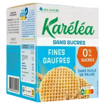 Ces fines gaufres sans sucres Karéléa transforment la pause gourmande en un moment plus équilibré. En effet, elles sont spécialement conçues pour ceux qui surveillent leur apport en sucre sans renoncer au plaisir.