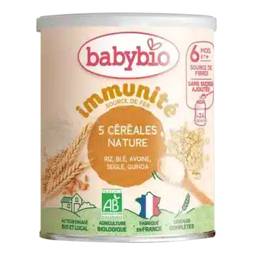 Le babybio 5 céréales immunité est disponible sur bebemaman.ma, livraison rapide au Maroc.