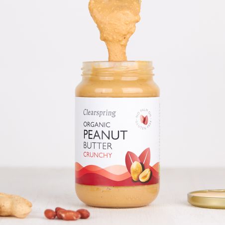 Clearspring Beurre de cacahuète Bio – Crunchy 350gLe beurre de cacahuète biologique Clearspring n’a pas été homogénéisé et ne contient pas d’huile de palme hydrogénée ni d’autres huiles végétales moins chères. Pour cette raison, une séparation de l’huile d’arachide peut se produire. Si cela se produit, mélangez soigneusement l’huile d’arachide du haut avec la pâte d’arachide du fond du pot.