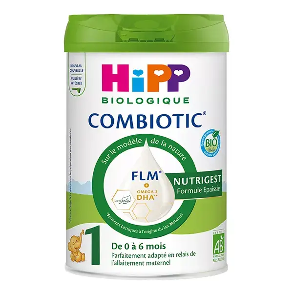 HiPP Combiotic 1 Lait pour Nourrissons Formule Épaissie de 0 à 6 Mois Bio 800 g est un lait en poudre qui répond aux besoins du nourrisson de la naissance jusqu’à 6 mois s’il ne peut pas être allaité ou en relais de l’allaitement maternel. Il contient des ingrédients Biologiques soigneusement sélectionnés et la combinaison unique de précieux nutriments sur le modèle de la nature :