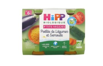 HiPP P’tits Veggies Poêlée de Légumes et Semoule dès 6 Mois Bio 2 Pots est un plat végétarien complet à la texture lisse avec :
