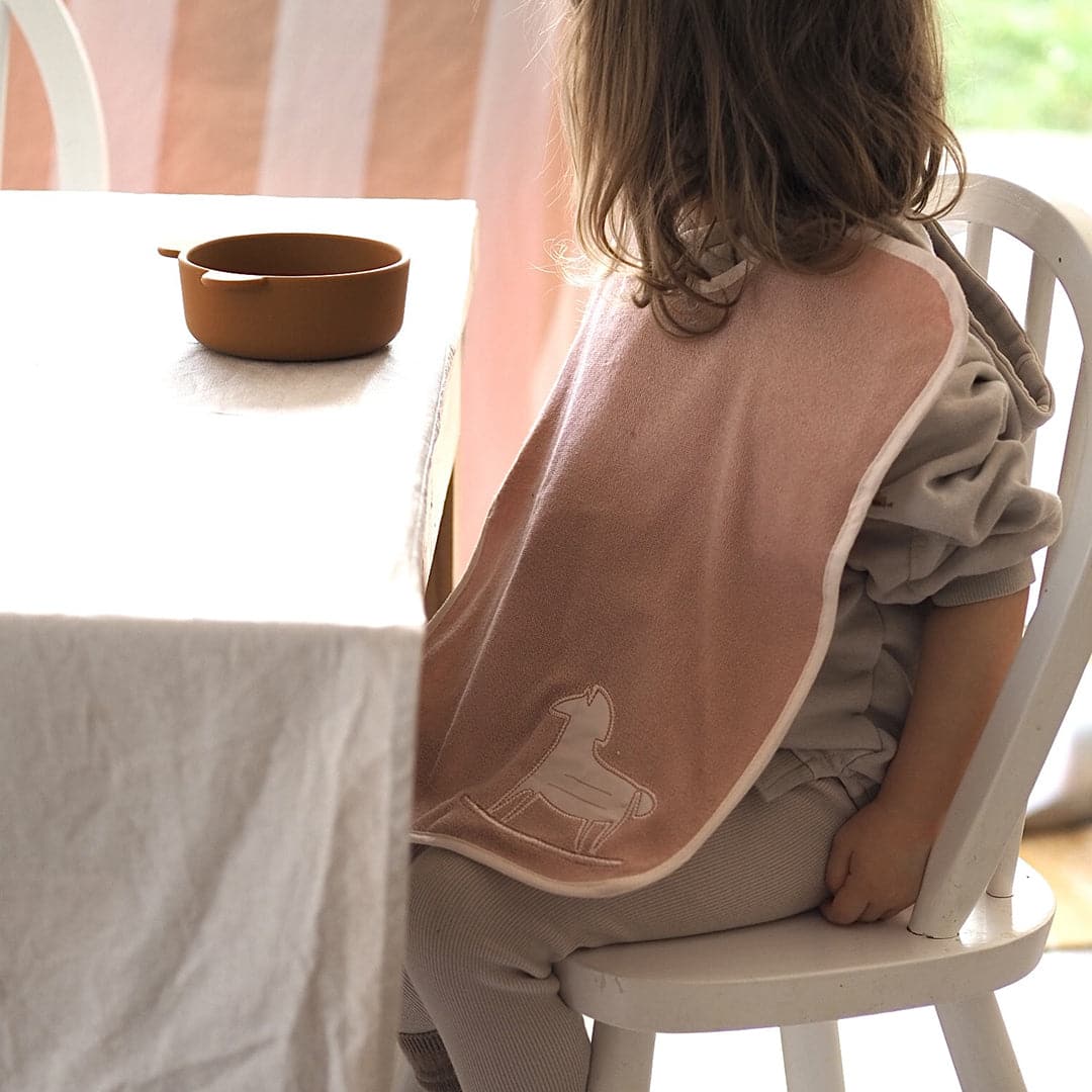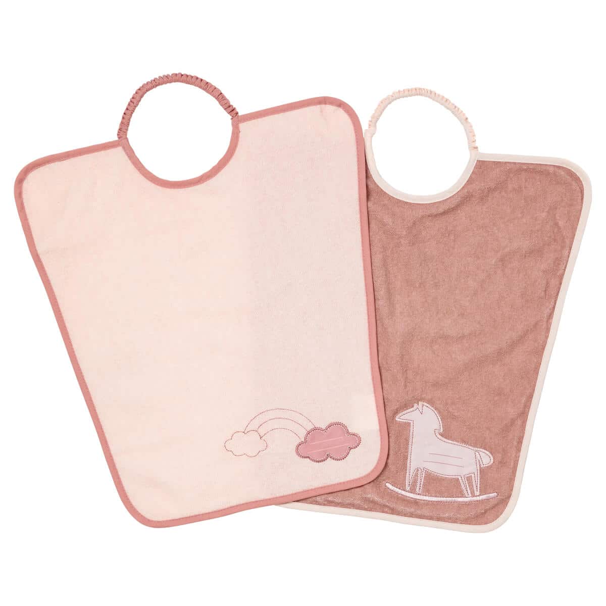 - 👶 Lot pratique : 2 bavoirs aux motifs différents (Arc-en-ciel et Cheval à bascule).