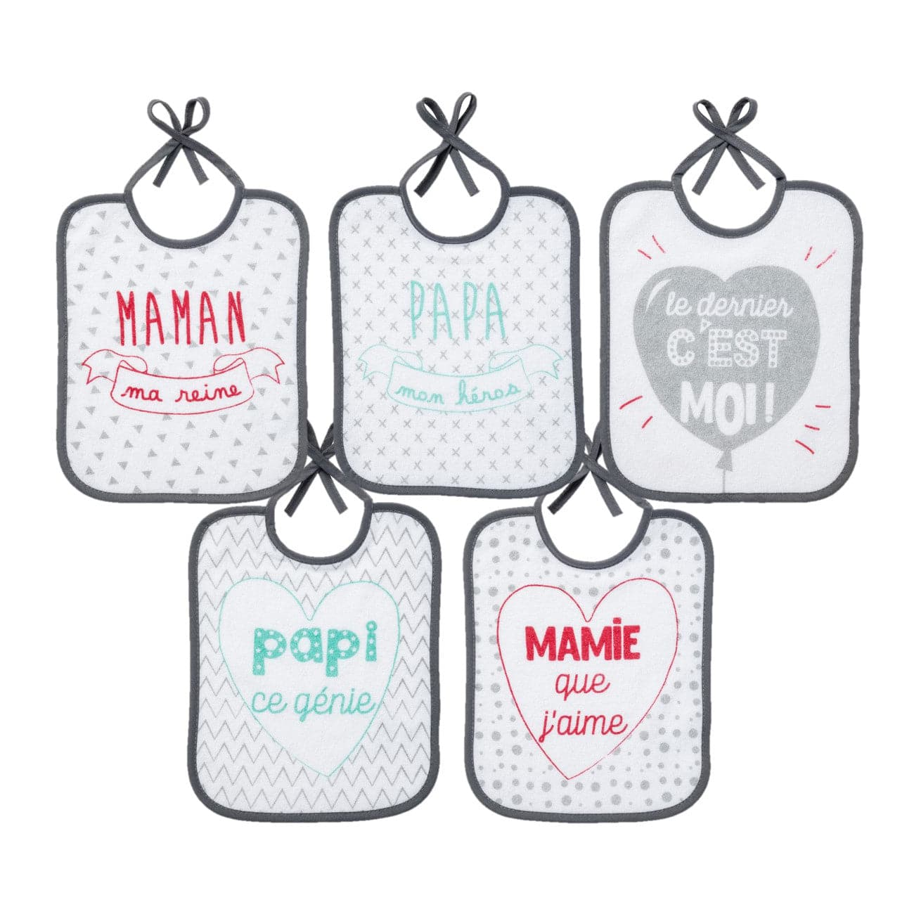 Cinq bavoirs représentent le nombre idéal pour faire face aux besoins fréquents des premiers mois sans devoir laver quotidiennement. Cela permet d’avoir toujours un bavoir propre à portée de main, que ce soit à la maison, chez la nounou ou en visite, faisant de ce pack un essentiel du trousseau.