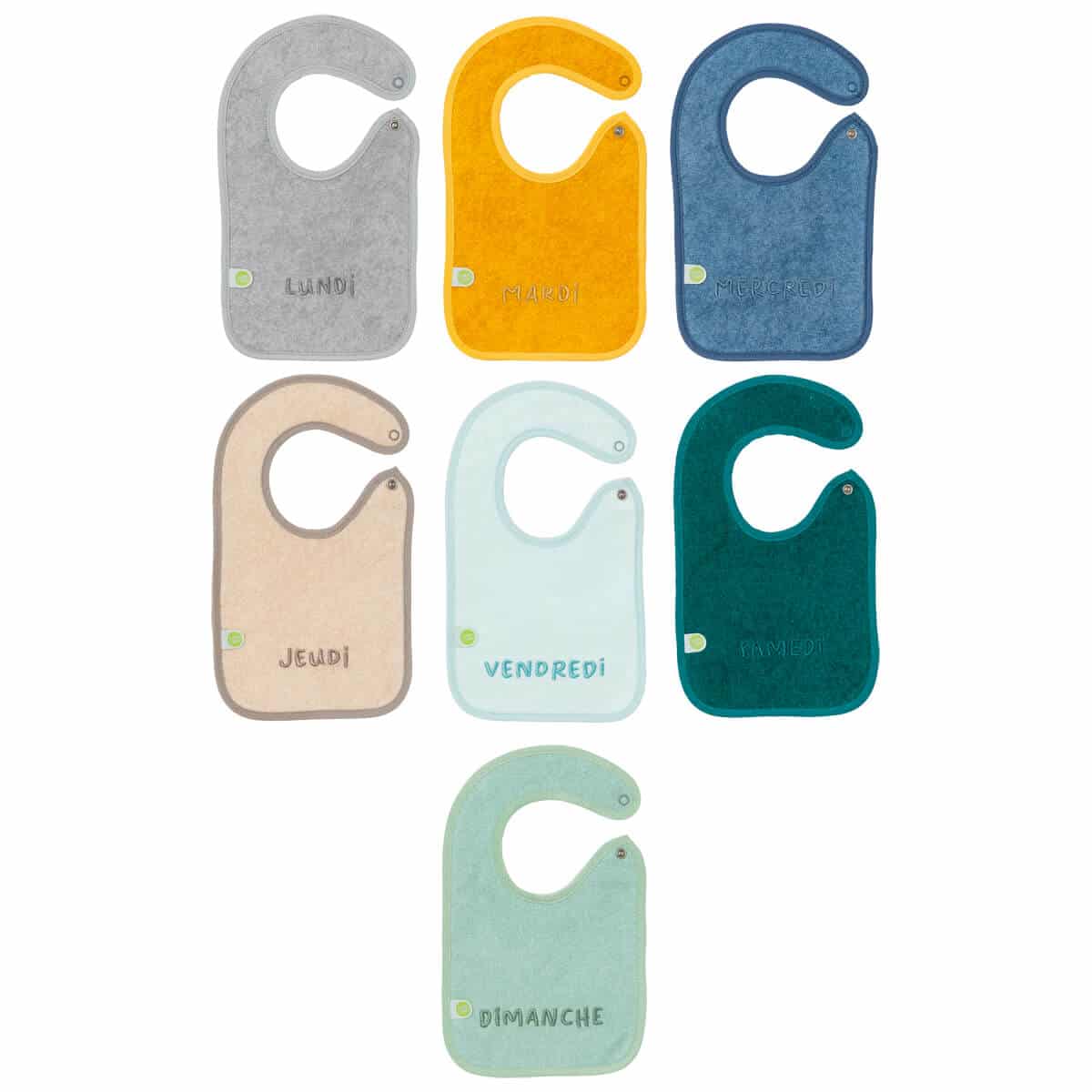 Ce lot de 7 bavoirs naissance semaine a été conçu pour vous faciliter la vie !