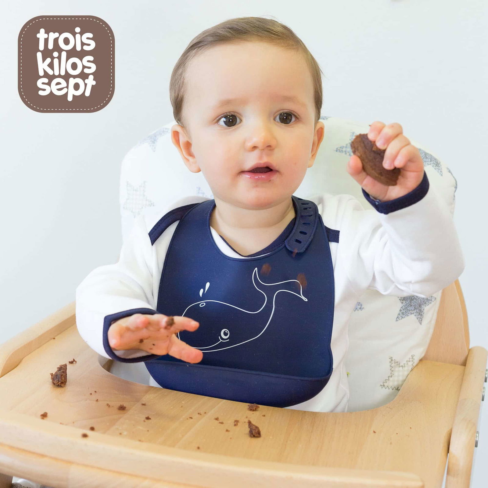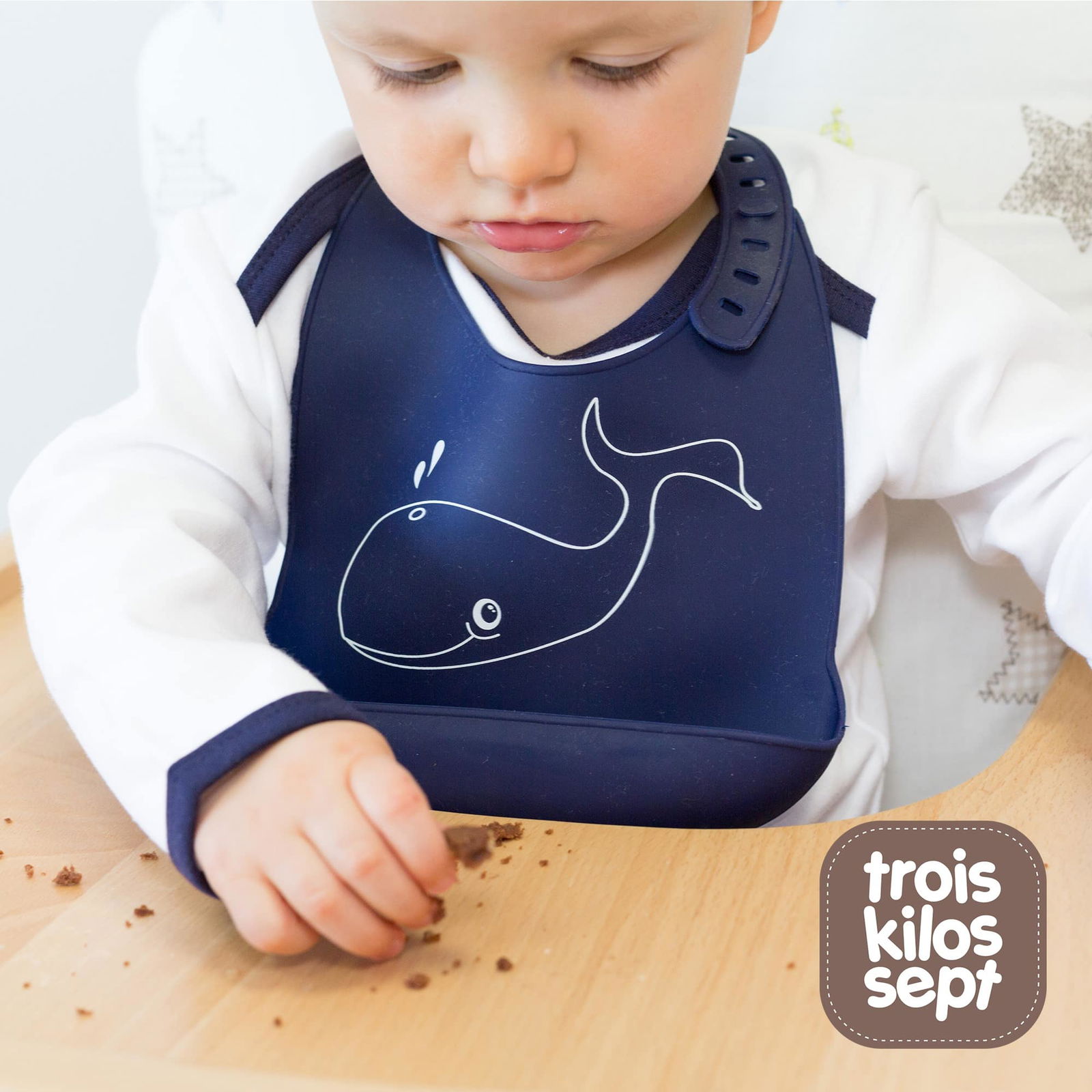 Trois Kilos Sept Bavoir en silicone avec récupérateur Baleine