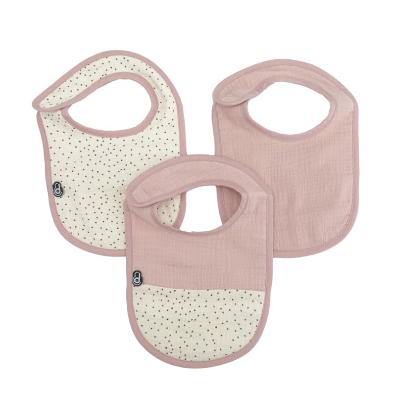 Offrez à votre petit(e) confort et praticité avec le Domiva Lot de 3 bavoirs en mousseline 6-12m en coloris vieux rose. Conçus spécialement pour les bébés de 6 à 12 mois, ces bavoirs associent douceur, absorption et élégance au quotidien.