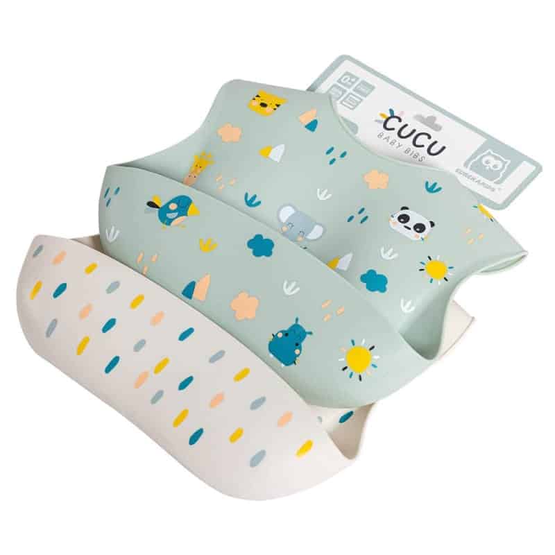 FAQ – Eurekakids Cucu Set de 2 bavoirs en silicone