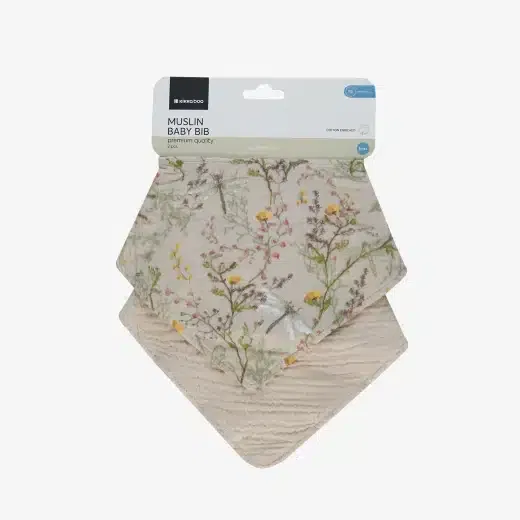 ❓ FAQ – Kikkaboo Lot de 2 bavoirs en mousseline Beige Jardin Secret