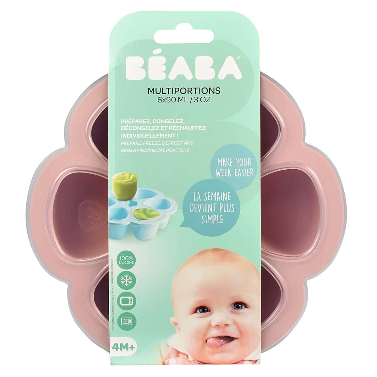 Beaba Multiportions silicone Rose 6×90 ml La solution parfaite pour conserver les repas de bébé !La Multiportions Silicone de BEABA vous permettra de gagner du temps au quotidien. Vous pourrez préparer six portions pour bébé en une seule fois et les mettre au congélateur. Les alvéoles étant indépendantes, vous aurez ensuite la possibilité de décongeler et démouler la quantité de nourriture souhaitée en fonction de l’âge de bébé.