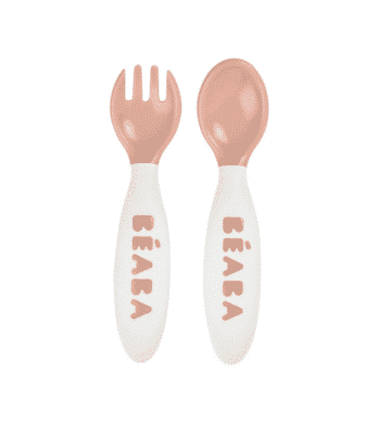 Beaba Set 2 couverts ergonomiques 2ème âge Rose prix Maroc | Bebemaman.ma