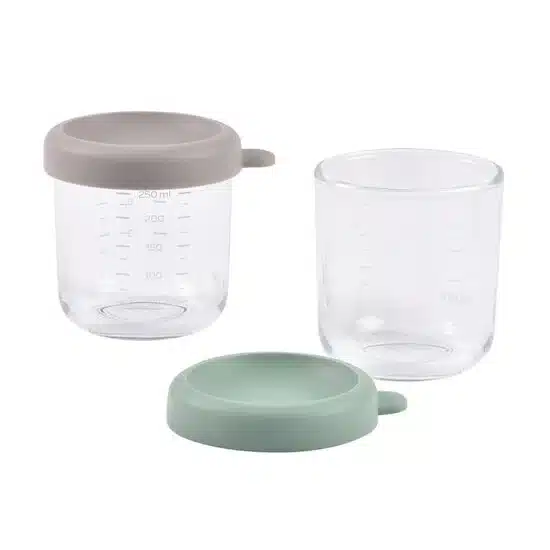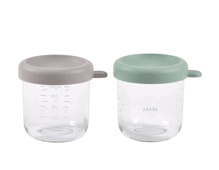 Beaba Lot de 2 pots de conservation en verre 250 ml Vert et Gris