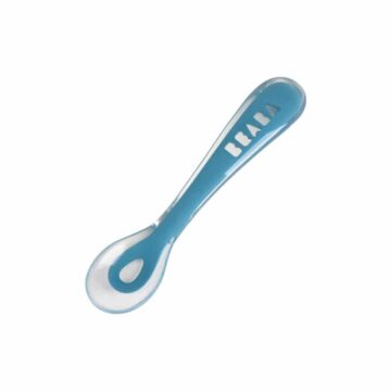 La Beaba Cuillère 2ème âge silicone bleu est disponible sur bebemaman.ma, livraison rapide au Maroc.