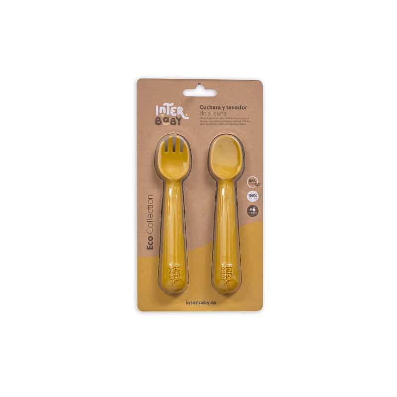Interbaby Set couverts en silicone Ocre 6m+