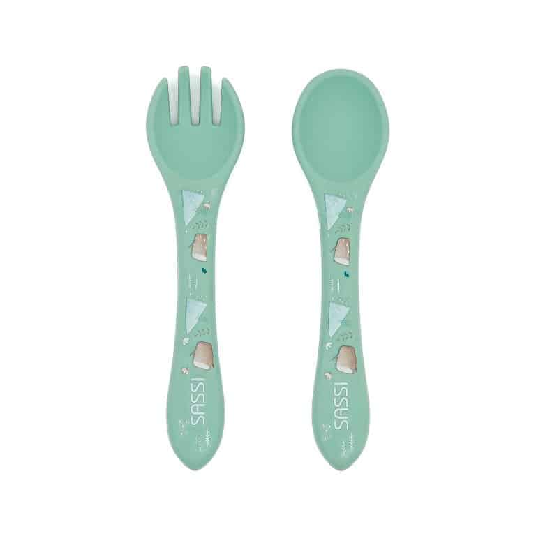 Des couverts à assortir avec le bol, l’assiette et le gobelet de la même collection.