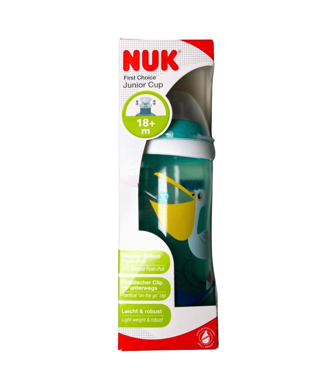 Se tenir debout, se défouler, parler, manger tout seul et boire…. ce qui change chez les petits pendant les 2 premières années frise le miracle. Il n’est donc pas étonnant que les « petits biberons » changent aussi : NUK Junior Cup a été spécialement conçu pour les enfants mobiles et actifs de 18 mois et plus. Pour étancher la soif en jouant, le bec verseur en silicone transparent, souple et étanche, se laisse ouvrir et fermer facilement. NUK Junior Cup est fabriqué dans un matériau ultraléger et est extrêmement robuste (PP) afin d’éviter les chutes.