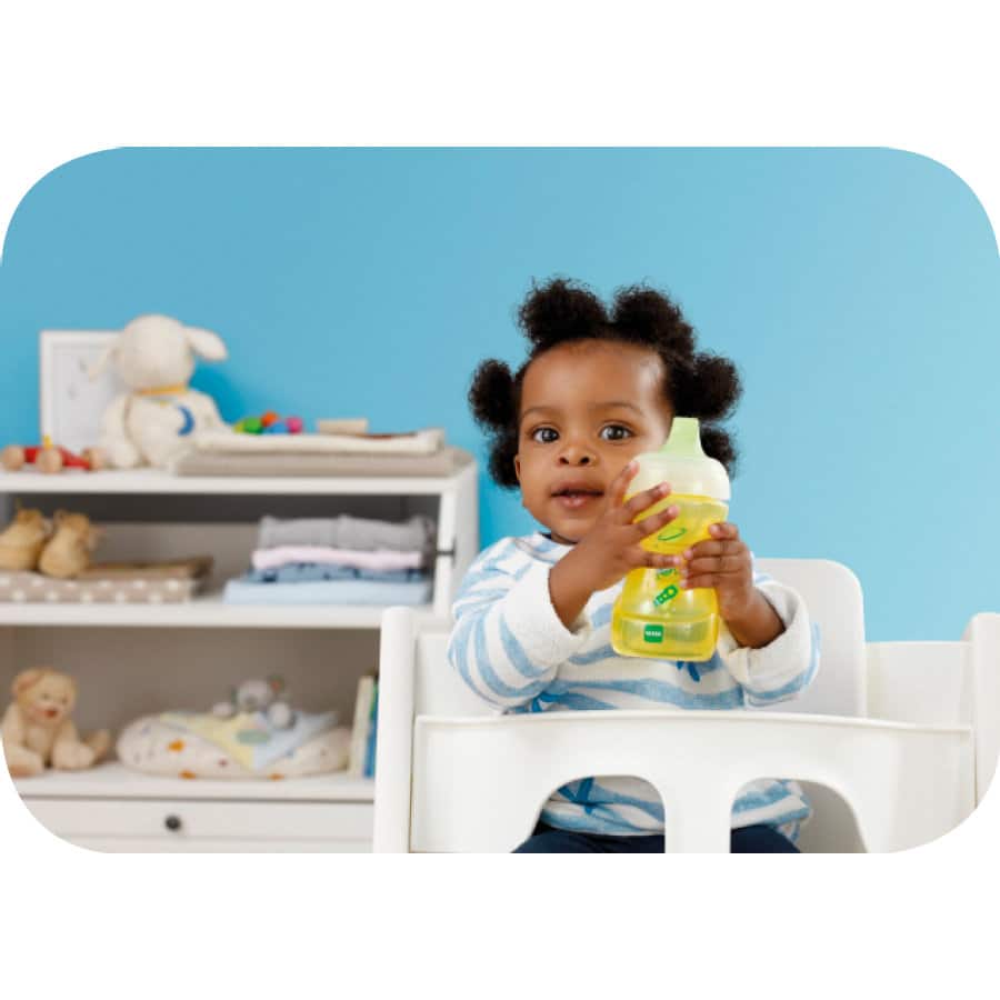 Grâce au couvercle de fermeture fourni, tu peux emporter le gobelet MAM partout et le nettoyer facilement dans le lave-vaisselle après utilisation.