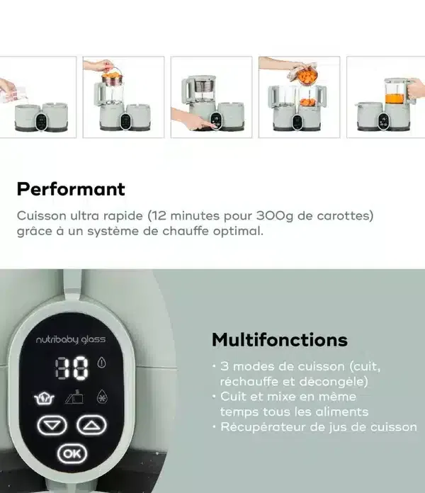 Babymoov Nutribaby Glass : le robot culinaire en verre à cuisson rapide pour bébé