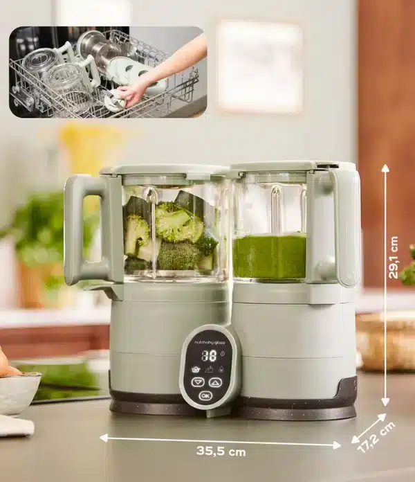 Avec le Babymoov Nutribaby Glass, préparez des repas maison sains, rapides et délicieux pour votre bébé, en toute sécurité. 🌟 Commandez dès maintenant sur Bebemaman.ma et profitez d’un robot culinaire pratique, écologique et durable !