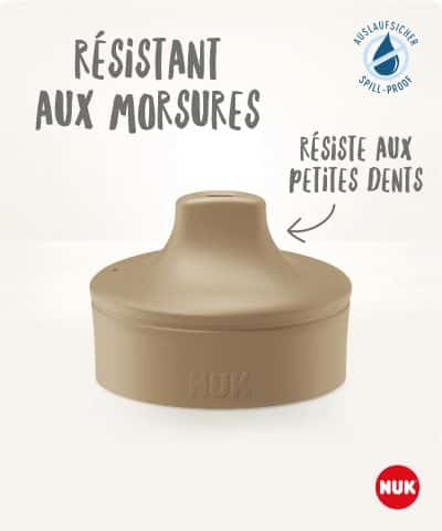 La tasse NUK Magic Cup 360° possède un bord souple qui se ferme au repos et s'ouvre lorsque bébé aspire. Ainsi, bébé peut boire depuis n'importe quel côté du bord, comme dans une vraie tasse. De plus, elle est totalement anti-fuite même retournée. Enfin, elle convient dès 8 mois et accompagne l'apprentissage de la tasse.