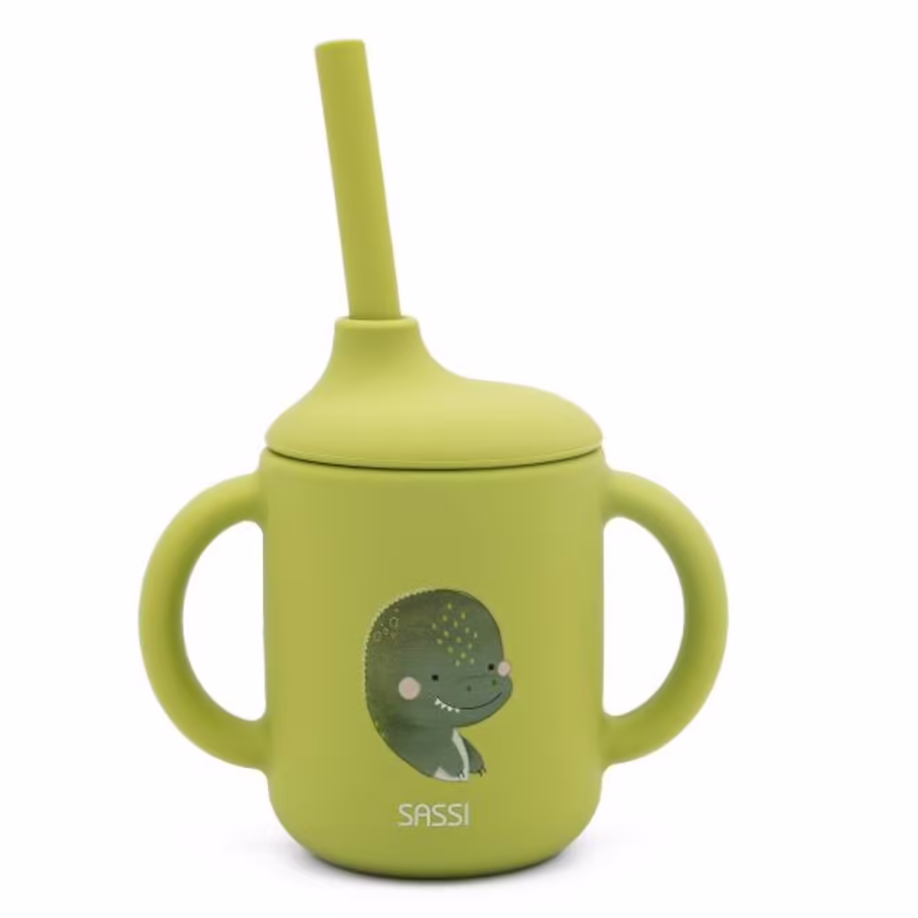 Sassi Gobelet en Silicone avec Poignées et Paille Dinosaure