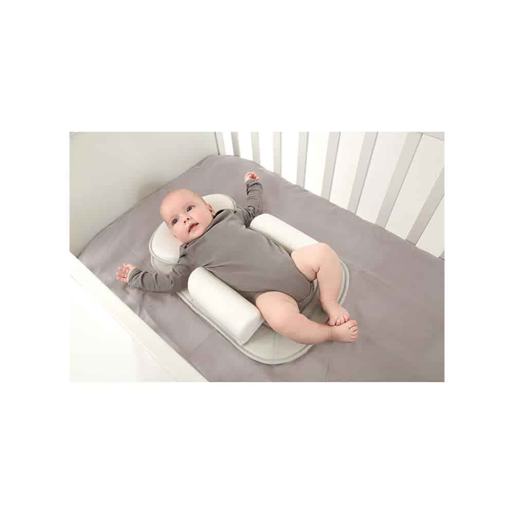 Un positionneur dorsal bébé aide à maintenir bébé sur le dos pendant le sommeil, une position recommandée pour réduire les risques liés au couchage.