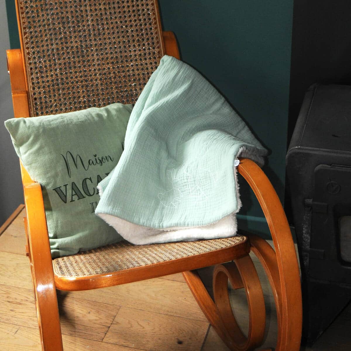 Composition : Gaze 100% coton. Dos en Sherpa 100% polyester.