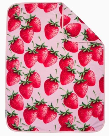 Couverture réversible en velours Fraise Twistshake pour bébé. Douce, légère et certifiée Oeko-Tex 100, elle est idéale pour emmailloter bébé, l’installer dans sa poussette ou son berceau. Dimensions 75×100 cm.