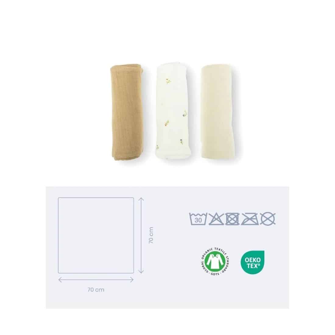 Le Doomoo lot de 3 langes muslin 70×70 cm Sweety Creamy est un indispensable pour les jeunes parents.