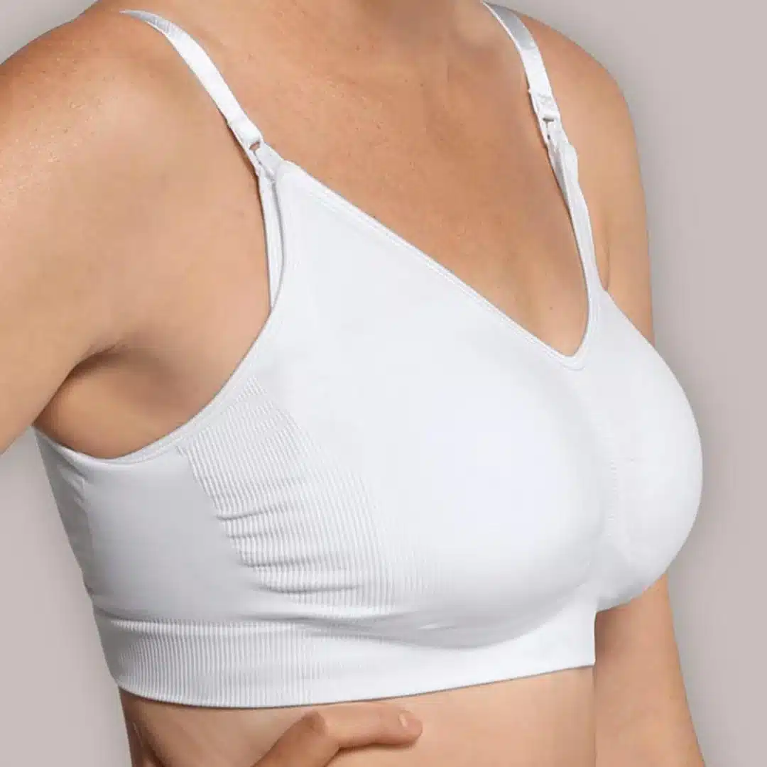 Alliez style et confort avec le Carriwell soutien-gorge d’allaitement et de maternité blanc 🤍. Un indispensable du trousseau de maternité pour allaiter en toute sérénité.