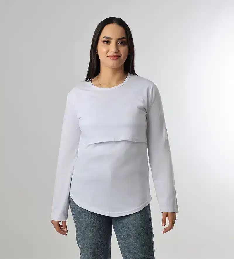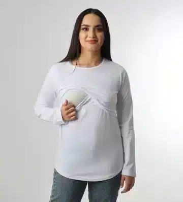 Le pull d’allaitement à manches longues Blanc en coton est un vêtement pratique et confortable pour les mères qui allaitent leur bébé. Fabriqué à partir de coton doux et respirant, il offre une sensation agréable sur la peau tout en offrant une grande durabilité.