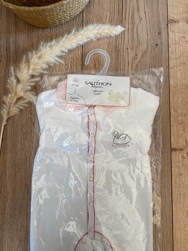 Sauthon Grenouillère velours Swan 3mois