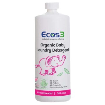 Ecos3 Baby Lessive Liquide Hypoallergénique 1050 ml : formule douce, biodégradable et efficace dès 30°C. Parfaite pour le linge de bébé et peaux sensibles.